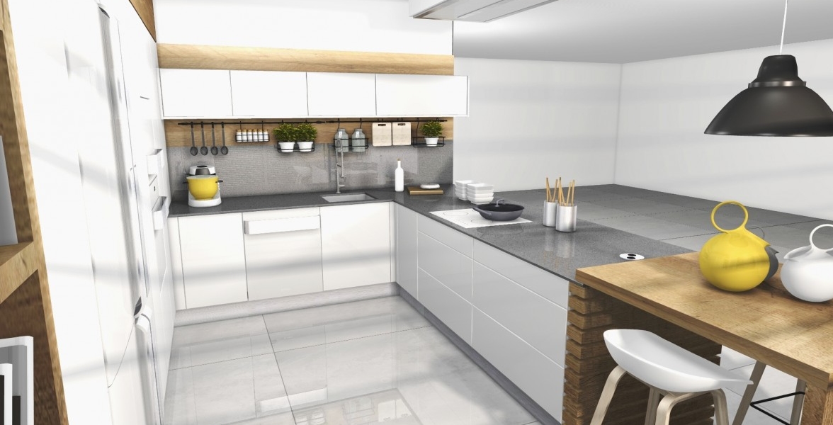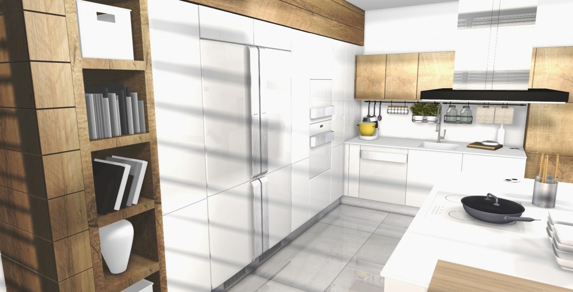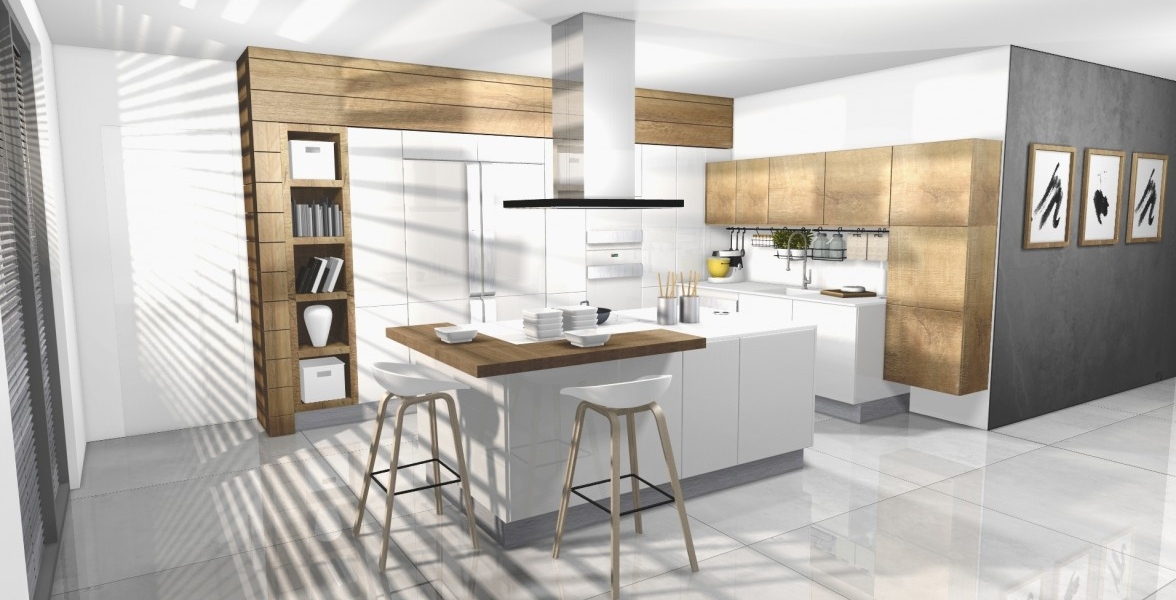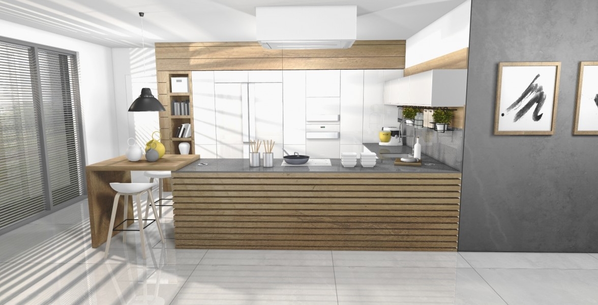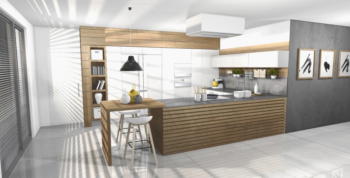 Hneď ako prvé upútajú spotrebiče od svetoznámeho dizajnéra Ora Ito, ktorý pre Gorenje vypracoval líniu spotrebičov v bielom a čiernom dizajne s masivnými hlinikovými úchytmi. Klient požadoval umiestnenie dvoch chladničiek s mrazničkami, Ora Ito dizajn nám dopomohol vytvoriť klientovu predstavu celkom presne. Nad rúrou sa nachádza mikrovlnný kryt, kde ukryjeme mikrovnku, ktorá nemusí ladiť so zbytkom kuchyne a nenarúša čistý dizajn. Oraito kryt sme využili aj na umývačku riadu. Ostrov je olemovaný dýhovými lamelami. V jednej verzii je ostrov obchôdzny v druhej verzii je súčasťou kuchyne. Ktorá verzia sa Vám páčia viac? :) |