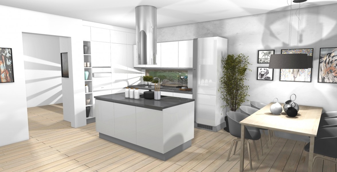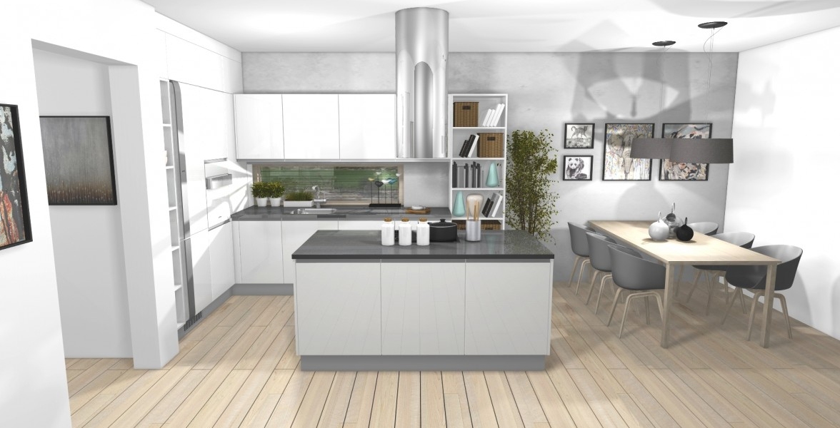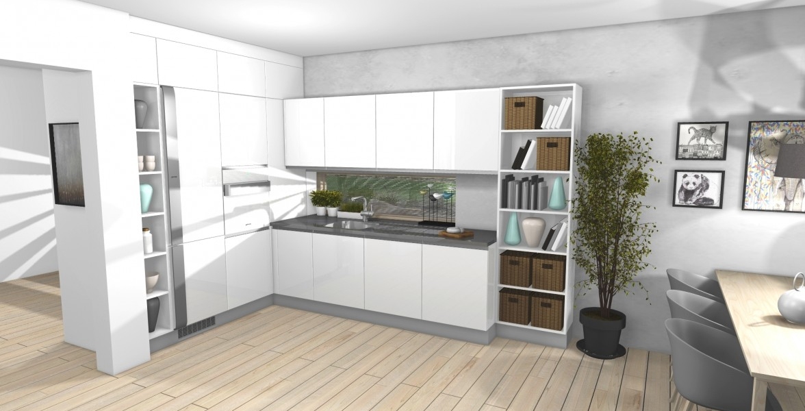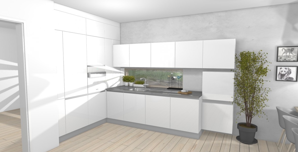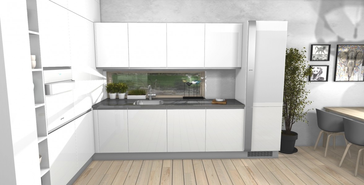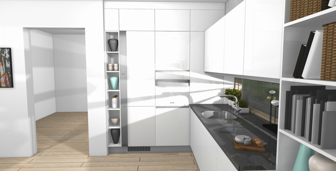 Zaujímavým prvkom v týchto dvoch variantoch boli spotrebiče od svetoznámeho dizajnéra Ora Ito, ktorý navrhol pre Gorenje úspešnú líniu práved pod jeho menom. V tejto verzii sú spotrebiče v bielej farbe, no existujú aj v čiernej. Kuchyňu do tvaru L zakončujú horné skrinky smerom nadol, alebo otvorená knižnica. V ostrove sa nachádza varenie, teda človek ktorý varí komunikuje s obývacím priestorom, toto riešenie je veľmi obľúbeným. |