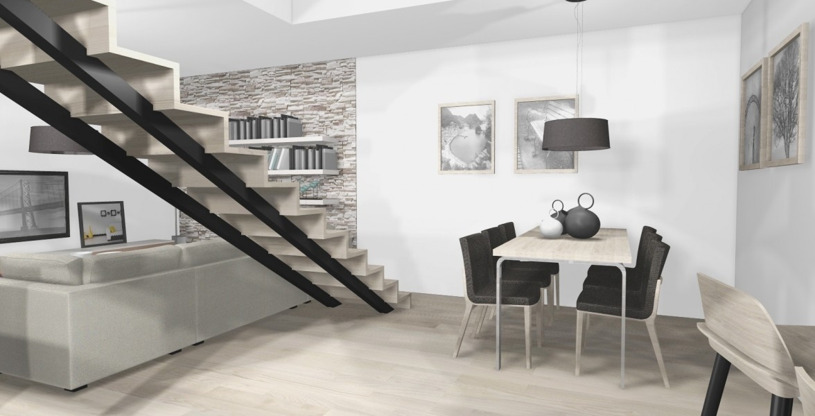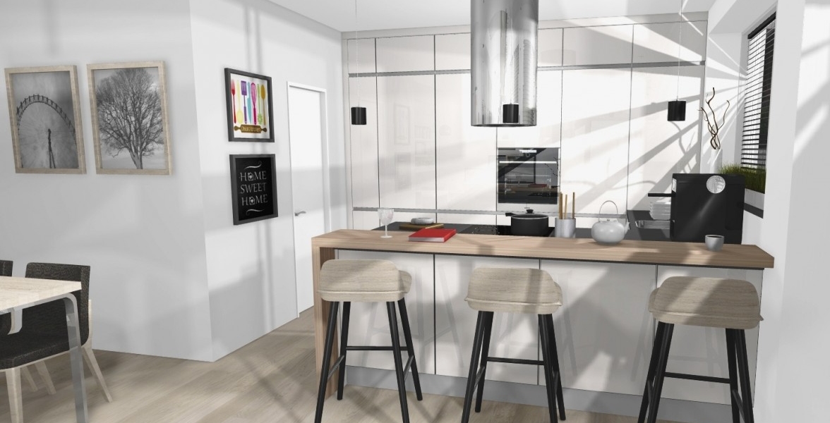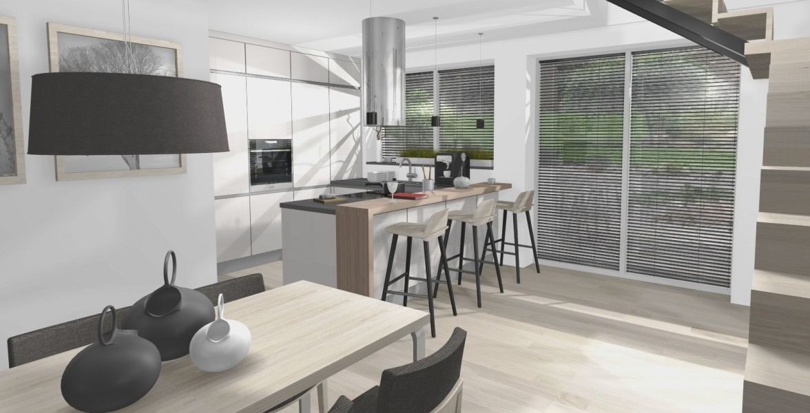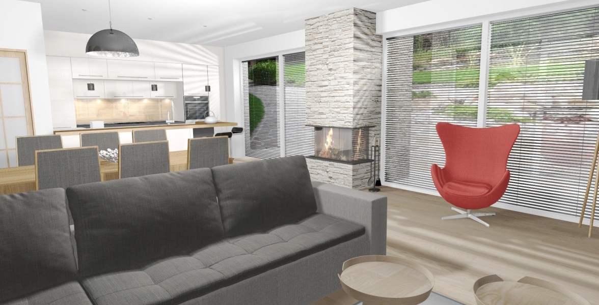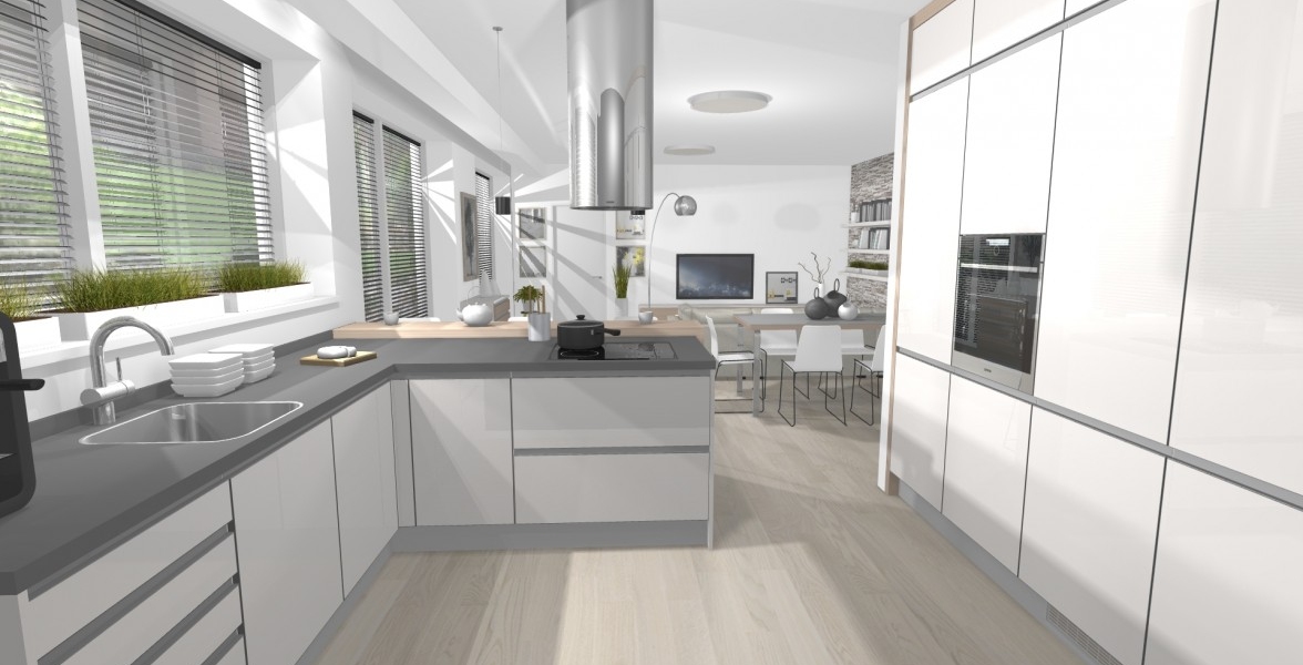 Návrh priestoru kuchyne, obývačky a jedálne sme vypracovali v dvoch rôznych variantoch, z ktorých je každý v inom štýle. Jedna verzia je viac do sterilnejšieho štýlu, teda biela, sivá, dreva pomenej. V druhej verzii je použitého viac dreva, teda celý priestor je viac preteplený a mäkkší. Klientom sa rozhodovalo ťažko, no nakoniec zvíťazil "viac drevený" projekt. |